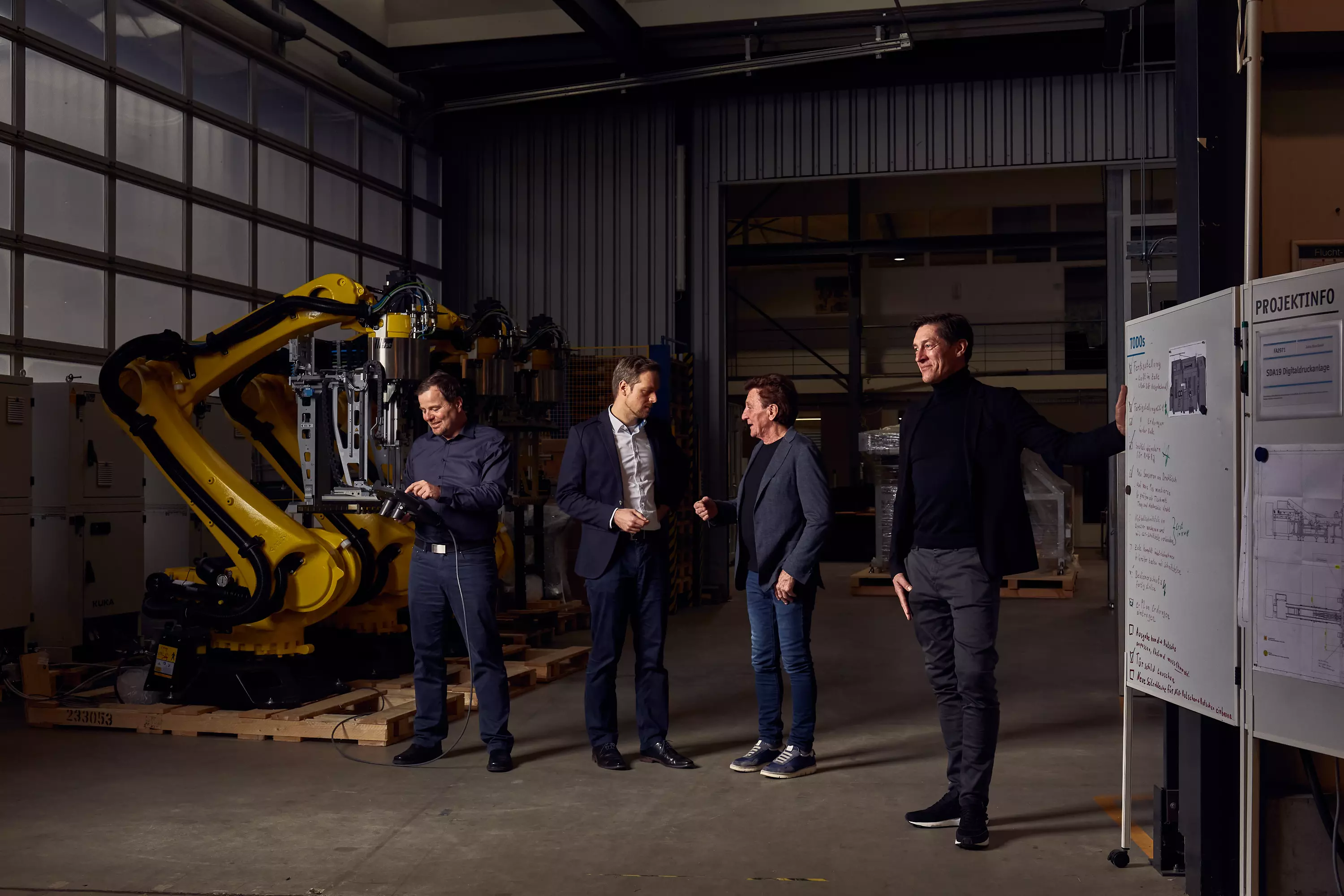 Eine Synthese aus Roboterkinematik und Digitaldrucktechnologie ermöglicht einen digitalen Freiformdruck. An dieser Technik wird seit über 10 Jahren geforscht und ist nun marktreif.