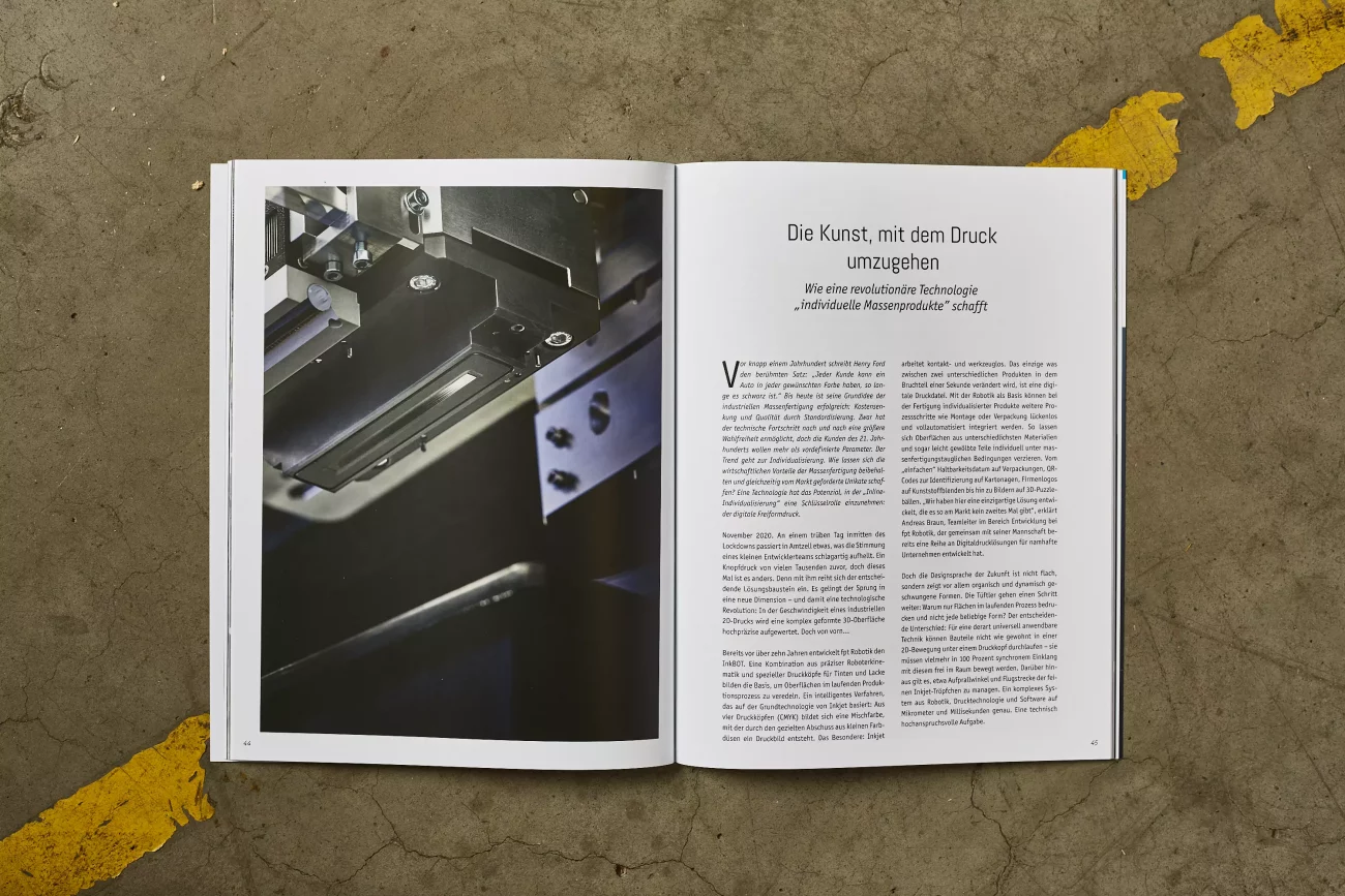Für die Entstehen des ersten Firmenmagazins „TECHNE“ wurde Bildmaterial von Mensch und Maschine benötigt. Dabei wurden über 150 Mitarbeiter, eine Vielzahl von Produkten und Arbeitsprozessen bebildert.